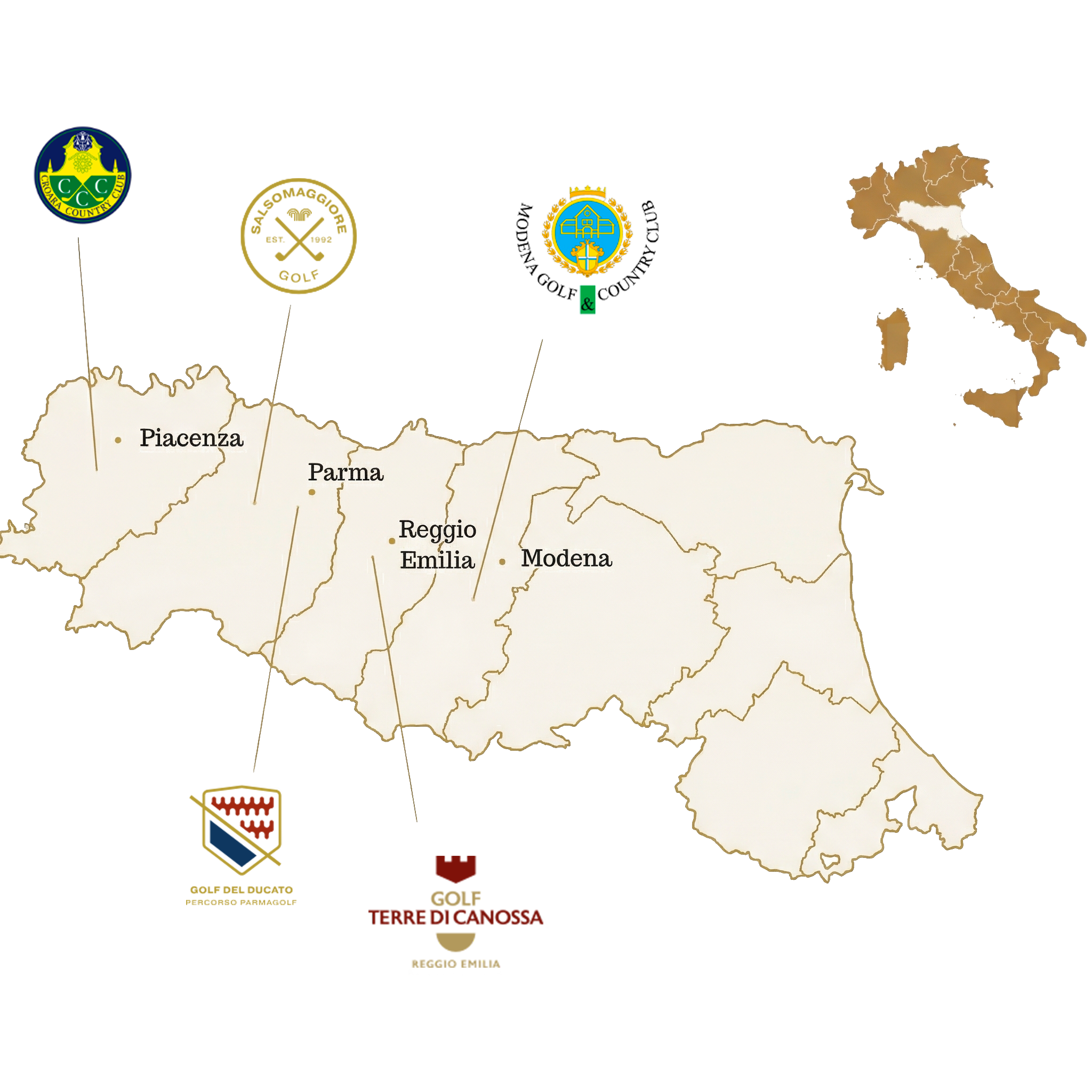 LʼEmilia, famosa nel mondo per la gastronomia e i motori, è anche un grande distretto turistico per il golf. Percorsi diversi, dal più semplice al più impegnativo, già sedi di tornei dellʼAlps Tour, Challenge Tour, Open DʼItalia e Campionati Italiani Professionisti e Dilettanti, sono una favolosa destinazione per coniugare le meraviglie del gioco del golf, alle meraviglie della nostra terra e ai piaceri dellʼenogastronomia. Scegli accuratamente uno dei nostri pacchetti e goditi la tua vacanza insieme a noi.
